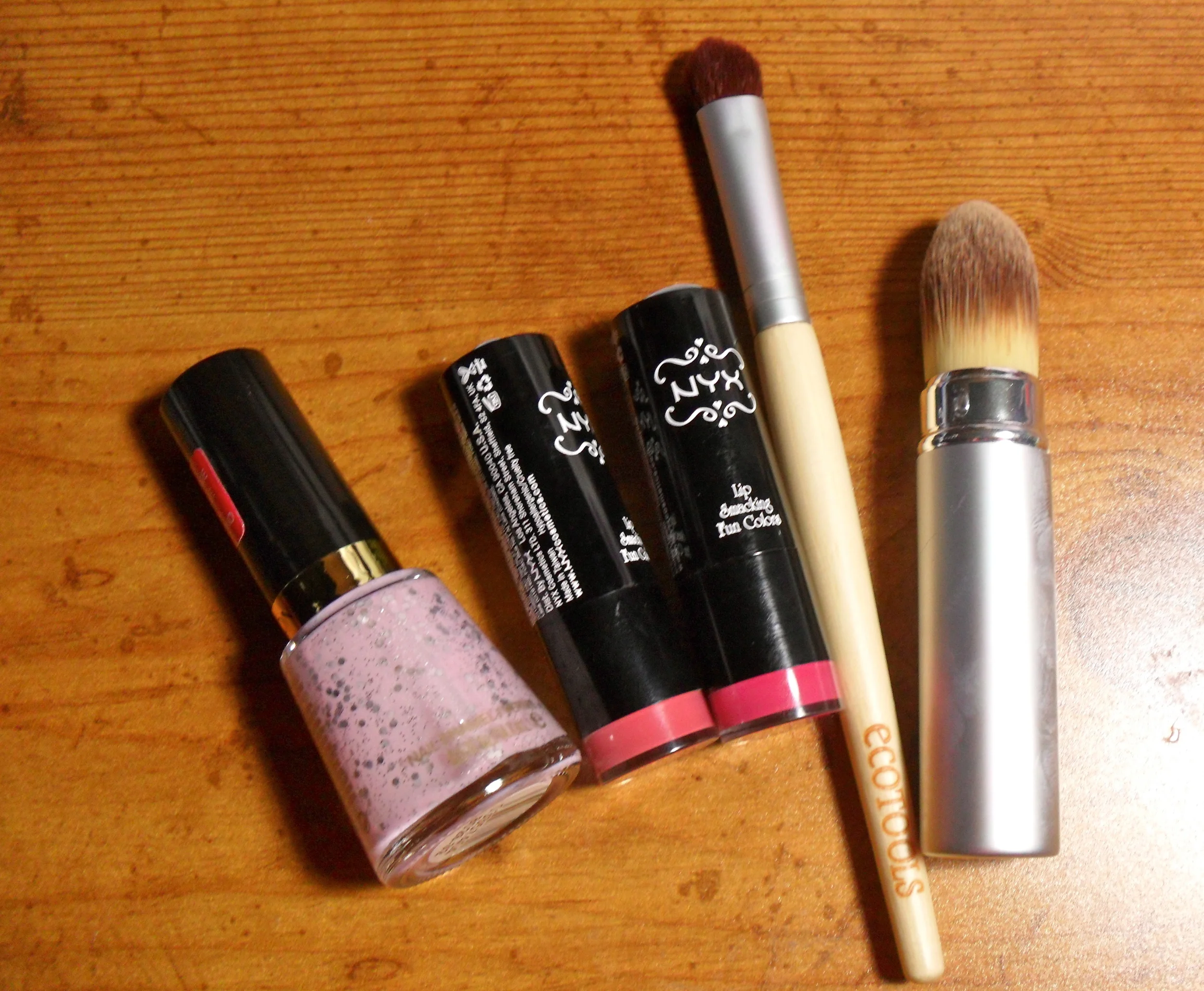 I'm also enjoying Revlon Popular and desperately need more glitter nail polishes! Also having fun trying NYX Round Lipsticks (here in Fig and Louisiana). The Ecotools #1203 Eyeshadow Brush and Retractable Pointed Foundation Brush were successes too!