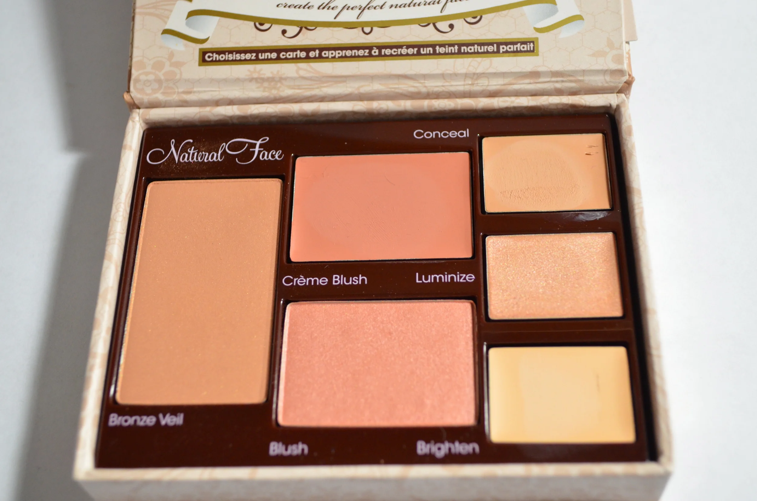 (L-R: Bronze Veil, Creme Blush, Blush, Conceal, Luminize, Brighten)
