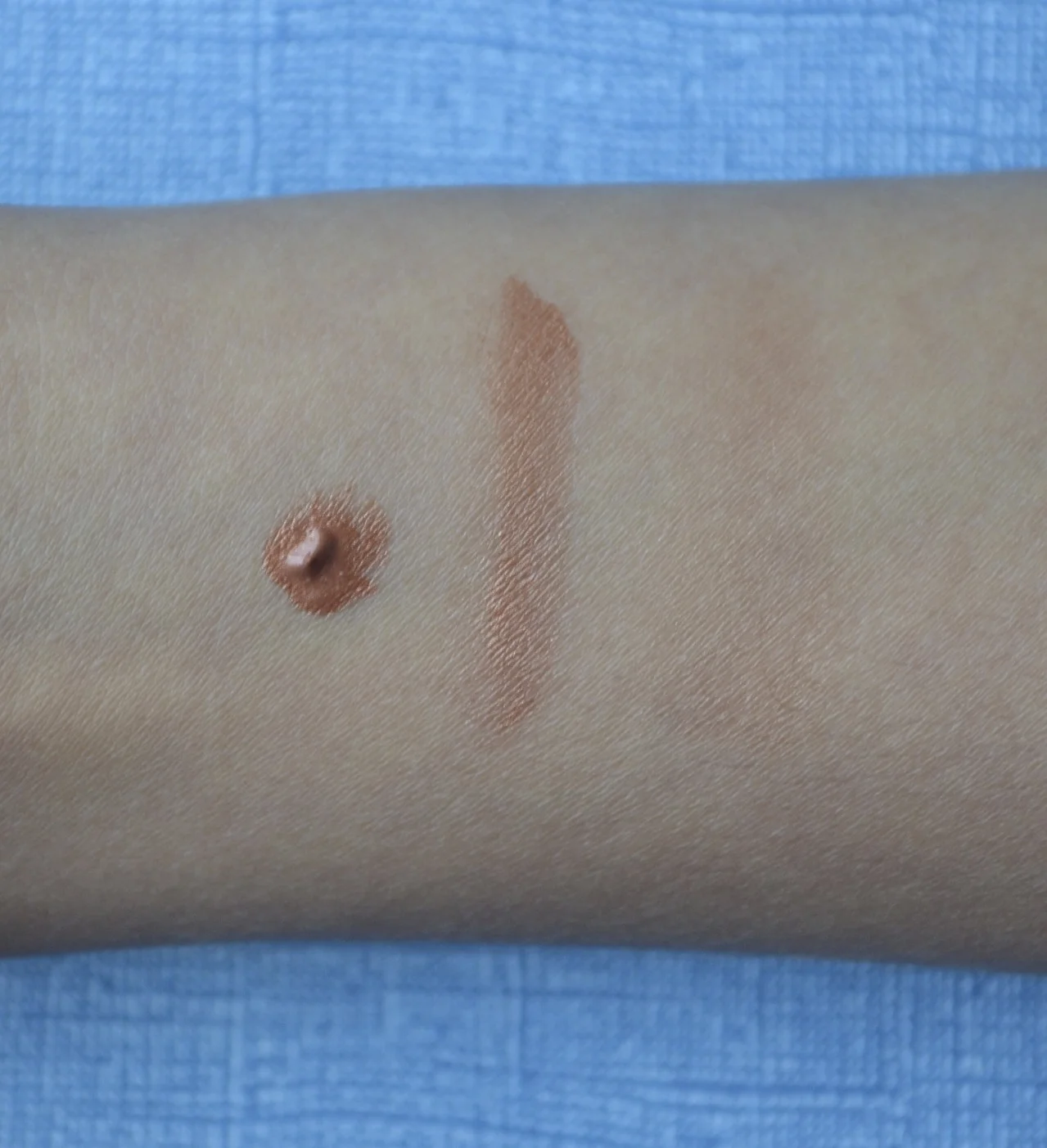 Here's a closer look at the creamy, almost wet texture of Charisma Skin Tint. I find it really easy to wear, and on me it lasted the majority of the day. The color faded some after a steamy bath, so I image this may not hold up perfectly in more humid climates or on extremely oily skin. However, with the gorgeous color, I think it may be worth testing anyway!i think this shade is really gorgeous, and that the product could have a number of uses, especially if you have a too light foundation or need a bit of color. I think some of you might even be able to pull this off as an eyeshadow! :)