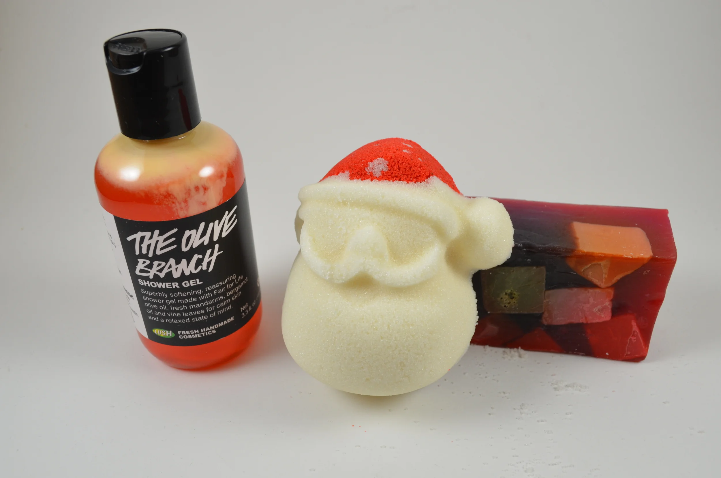This gift set includes two lovely products from the holiday collection, and a shower gel from the permanent line. The Olive Branch Shower Gel is a great earthy citrus that lathers up quite nice. Composed of olive and mandarin oil, I think this is a great gift item for just about anyone. My boyfriend thinks it is a perfect shower gel scent for a guy!