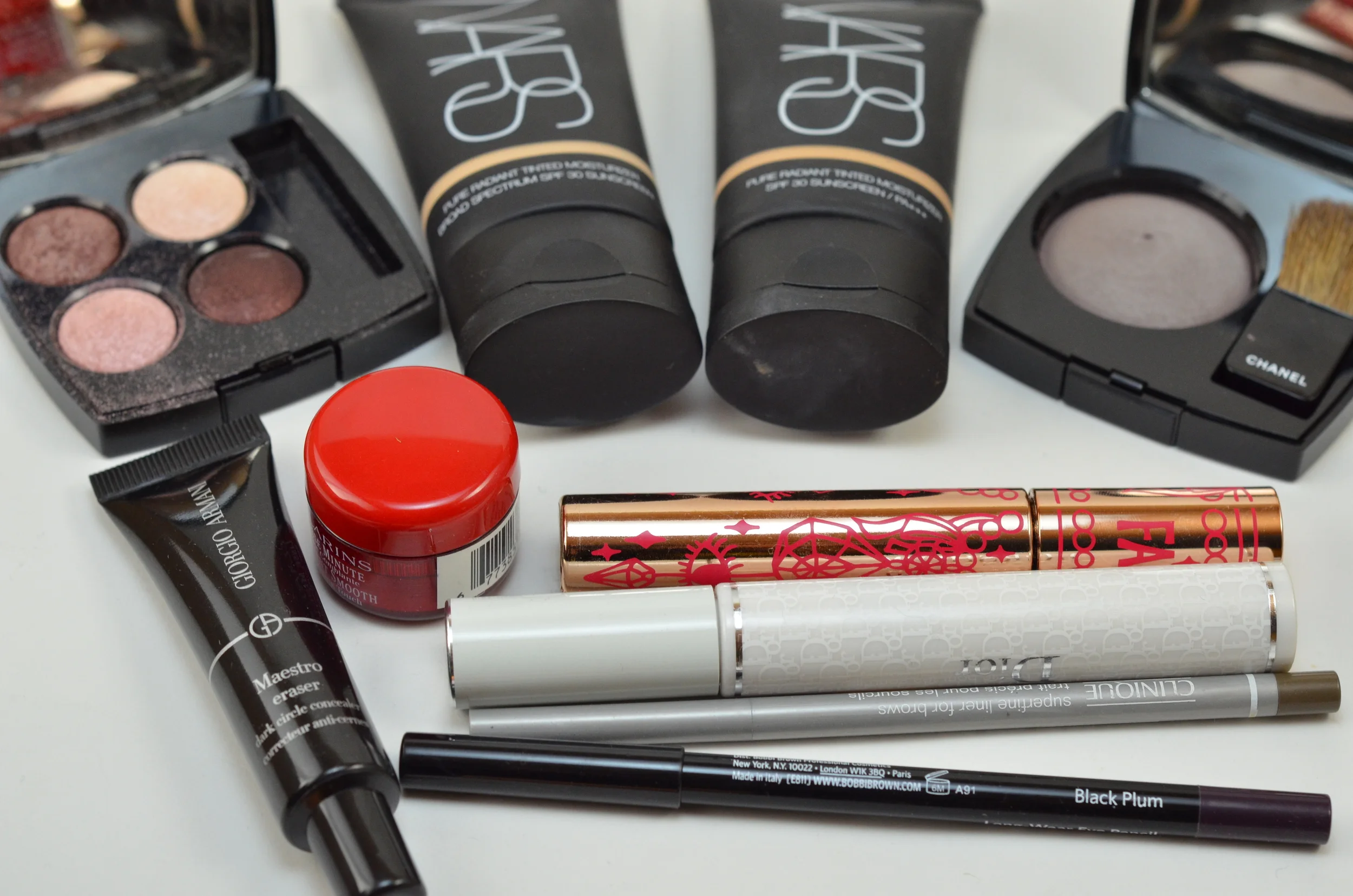 This week, I posted my makeup bag pretty late, and was afraid I wouldn't manage to really wear makeup at all for the rest of the week! Fortunately, I did manage to wear makeup, YAY! On Wednesday, I wore the following goodies. I was happily surprised by Becca The Ultimate Mascara, and I just love the gorgeous pink shade of Burberry Lip Glow in Pink Sweet Pea. I threw on other basics like Nars Tinted Moisturizer, Rimmel Scandaleyes in Nude, and Benefit Eye Bright. I managed to misplace my Fresh Umbrian Clay Concealer and Clinique brow pencil, both of which I wore all week!