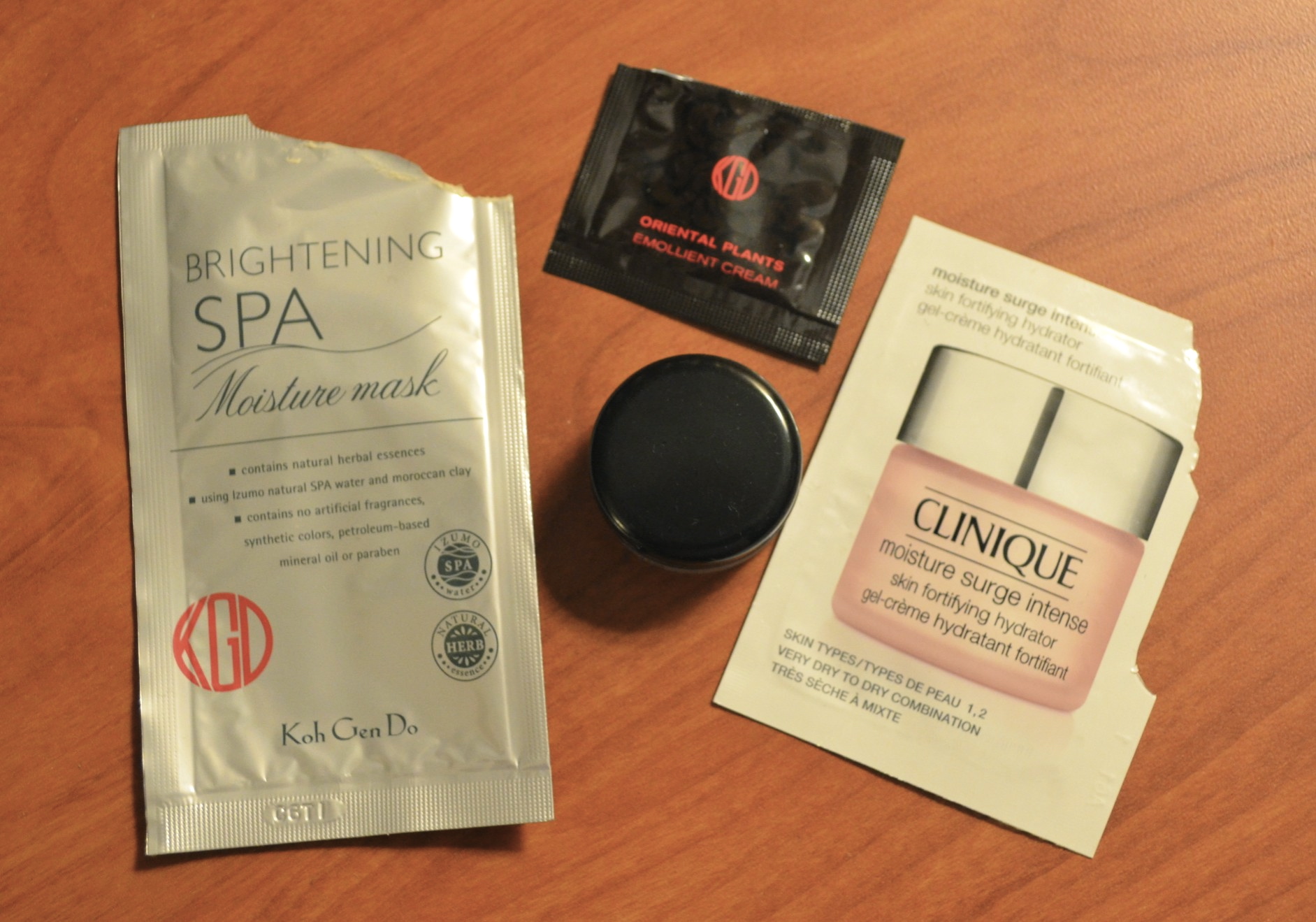 Yesterday I posted a little glimpse at the samples I've collected recently, but I'm glad to say that I've also managed to use a few on this extended trip to California. I seem to have thrown away the packets for some of them, but here's a look at a few! Also, is it just me or is it somewhat annoying to use these little foil packets?? Anyways, I'd love to know what you think! Should I keep doing these posts, and have you tried any of these products? :)